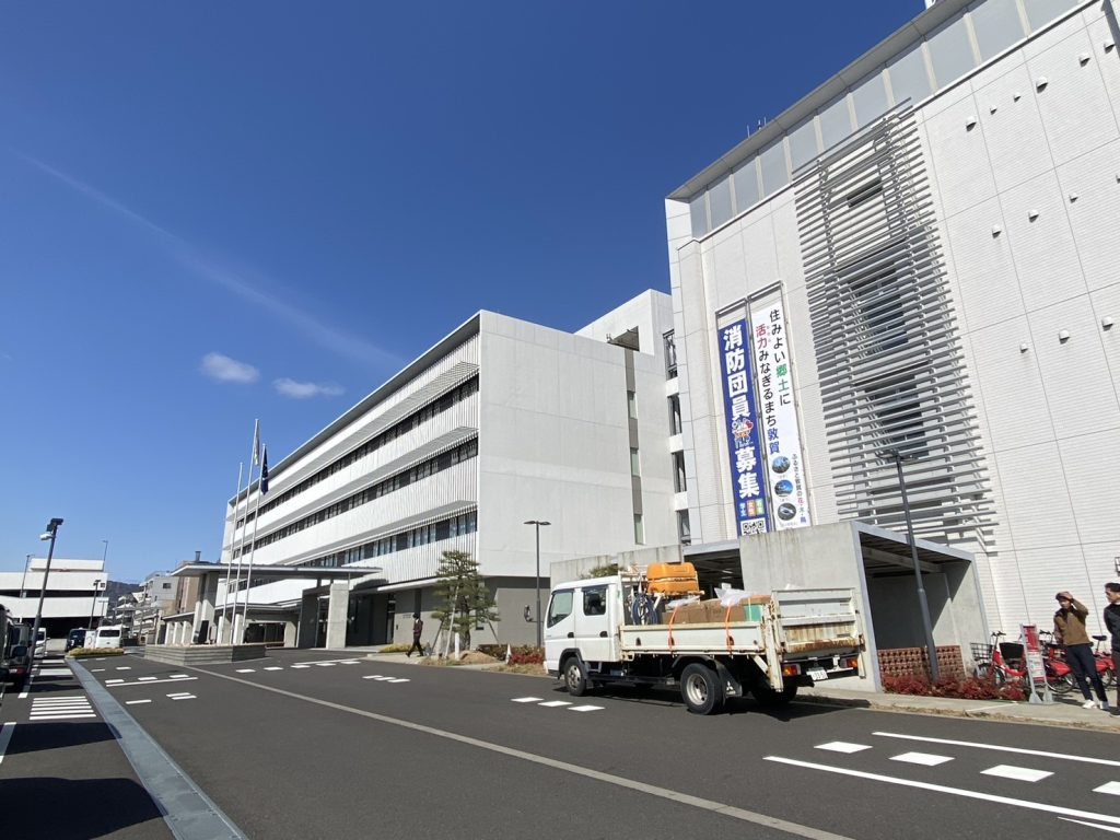 まずは敦賀市役所へ到着!!ここで納品先を確認して、搬入作業へ✨